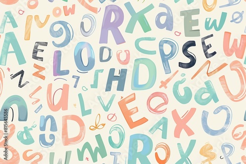 pattern background with all the alphabet letters, pastel colors