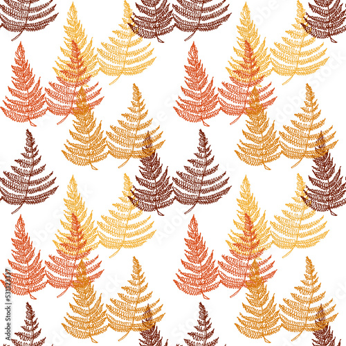 Pattern con foglie di felce colorate su sfondo bianco
