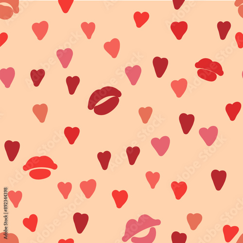 Pattern in red colors on a white background with kisses and hearts. Vector illustration