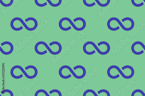 pattern. Infinity sign is blue, isolated on green background. Symbol of infinity. 3D image. 3d rendering