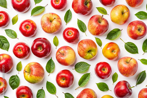 Pattern of apples and leaves, isolated on whith background