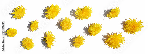 pattern of different yellow dandelions on a white isolated background