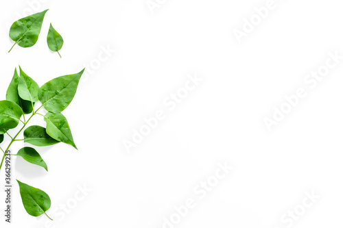 Pattern of green tree leaves, nature background. Overhead view, flat lay