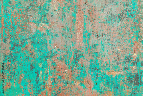 pattern of grunge wall with different colors covered by peeling green color in harmonic structure