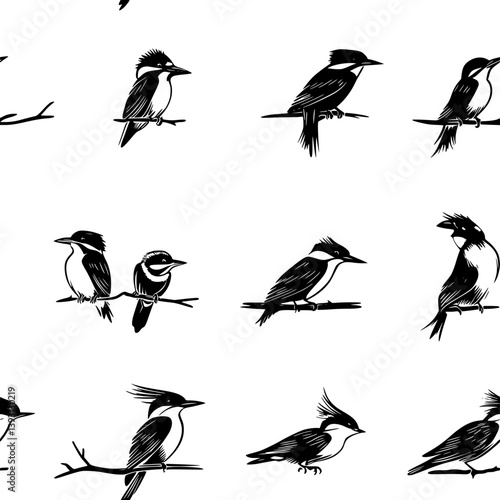 Pattern of Kingfishers vector icons, Kingfishers seamless pattern