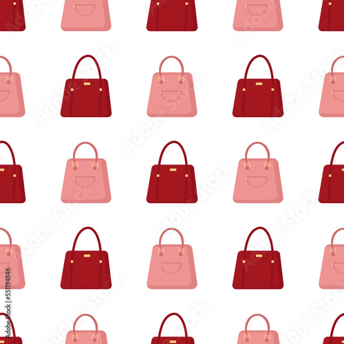 Pattern of pink and burgundy bag on white