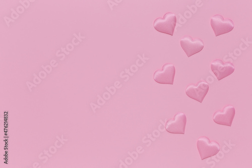 Pattern of pink romantic hearts. Valentine's day texture. Love concept. Top view. Copy space.
