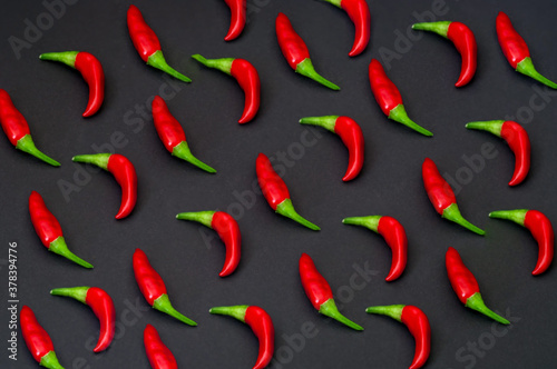 Pattern of red chili peppers on gray background. Creative copy space