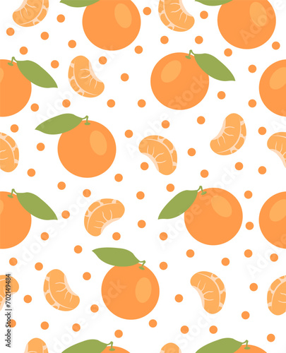 Pattern of tangerines on white background.
