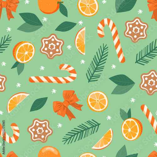 Pattern with Christmas decoration. Winter holiday design for greeting card, invitation, cover, calendar, social media posts, menu, fabric, print