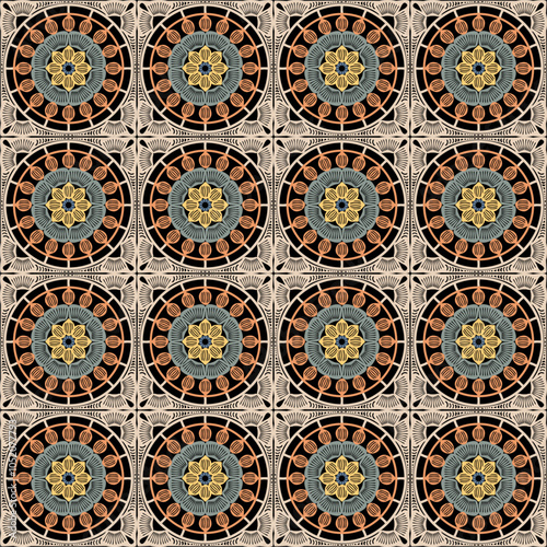 Pattern with crochet granny square with flowers wallpaper handmade decorative art design print