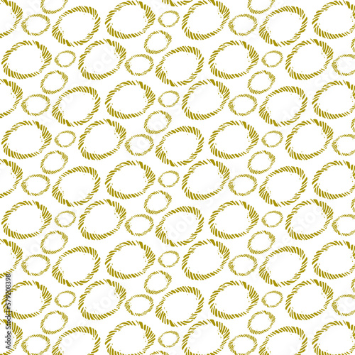 Pattern with decorative circles with texture in khaki gold color. Minimalistic geometry style, hand drawn.