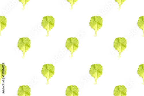 Pattern with light green leaves of green cabbage on a white background. Summer minimalism