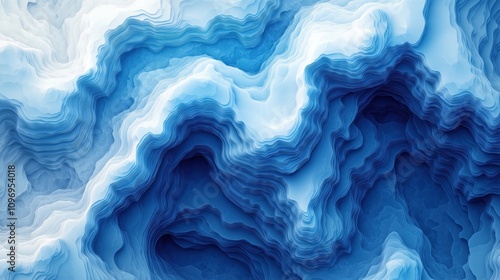 Pattern with white and blue hand drawn lines. Abstract landscape background. Ocean art with nature template
