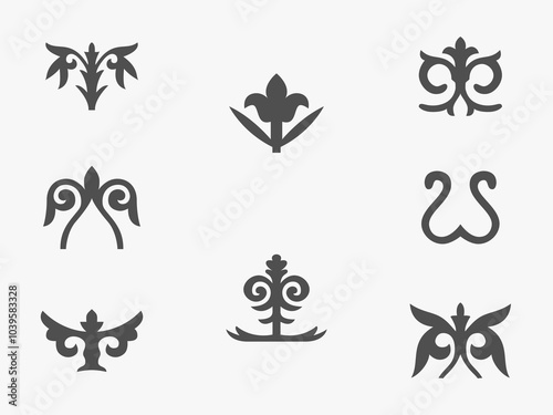 Patterns consisting of rhythmic ordered elements peculiar to Kazakh folk art. Set of vector national ornaments of Kazakhstan, Turkic peoples. Part 1