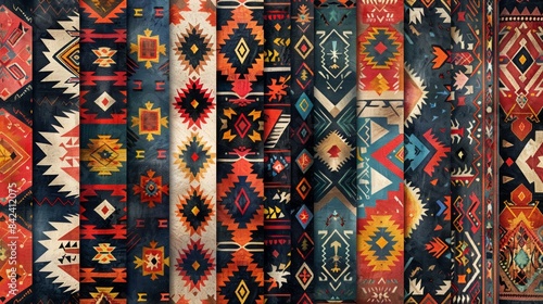 Patterns inspired by Tajik Pamiri textiles, featuring geometric designs and vibrant color combinations.