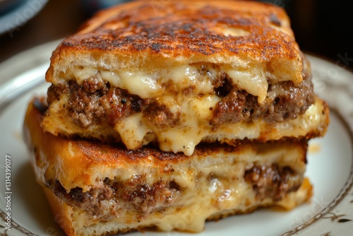 Patty Melt: Homemade American Comfort Food with Cheesy Beef Burger and Brown Bread