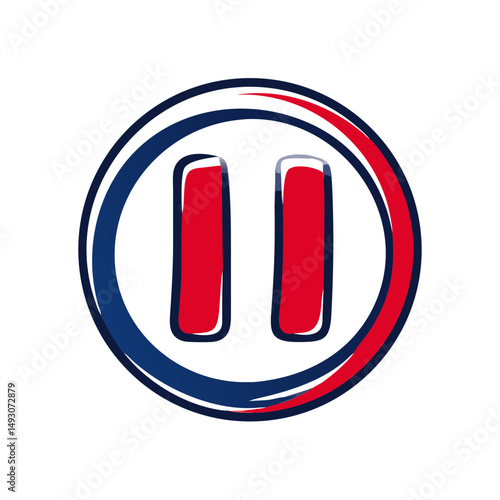 Pause button icon in red and blue circular design