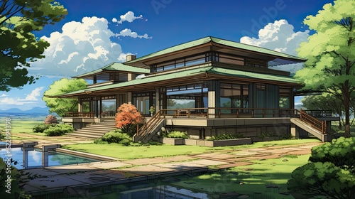 Pavilion in the park. AI generated art illustration.