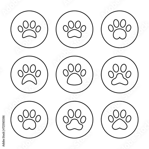 Paw icon set vector. paw print sign and symbol. dog or cat paw