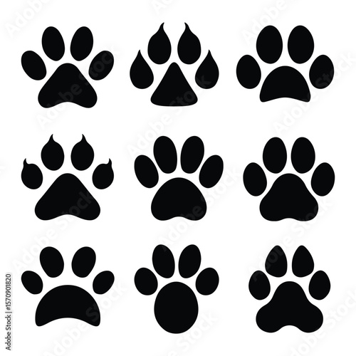 Paw Print SVG Bundle, Animal Footprint Silhouette, Dog Cat Paw Vector Set, Cricut Cut File