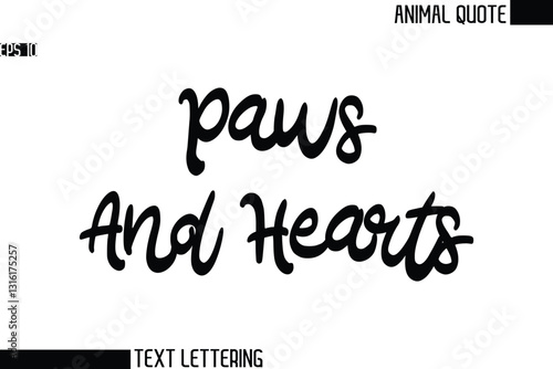 Paws And Hearts Black and White Vector Typography Text Illustration Of Animal Quote