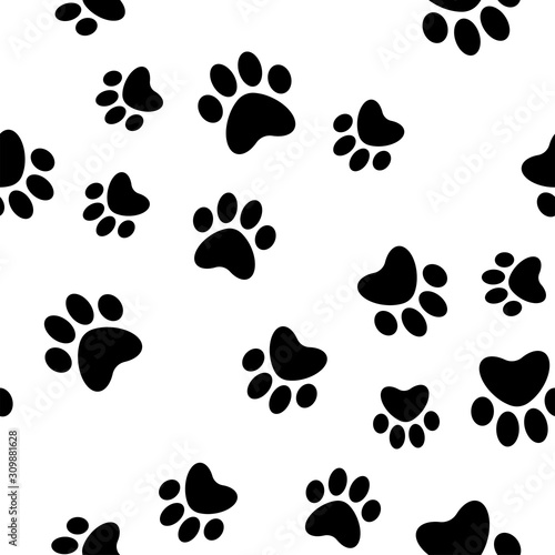 Paws seamless pattern. Dog paw texture. Mascot love background.