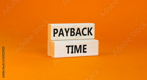 Payback time symbol. Concept words Payback time on wooden blocks. Beautiful orange table orange background. Business and payback time concept. Copy space.