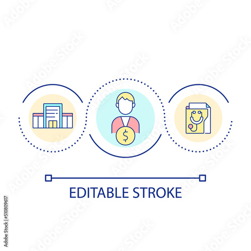 Paying for full cost of medical care loop concept icon. Hospital billing abstract idea thin line illustration. Medical health insurance. Isolated outline drawing. Editable stroke. Arial font used