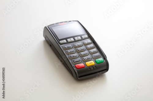 Payment machine, POS terminal isolated on white background.