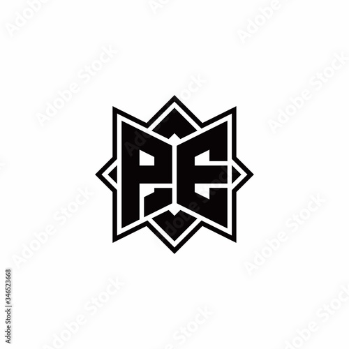 PE monogram logo with square rotate style outline