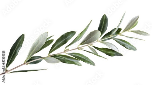 Peace Branch. Fresh Green Olive Tree Twig on White Background with Clipping Path