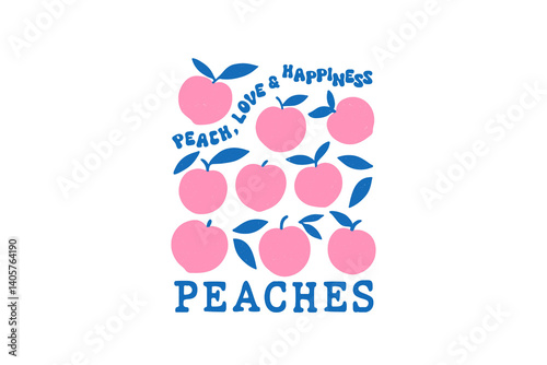 Peace, love a happiness peaches, Retro Fruits PNG Sublimation T Shirt Design