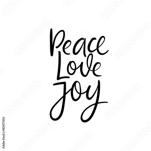Peace love joy. Christmas and Happy New Year cards. Modern calligraphy. Hand lettering for greeting cards, photo overlays, invitations, tags.