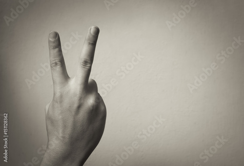 Peace not war. Hand making peace sign.
