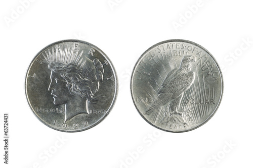 Peace Silver Dollars on White