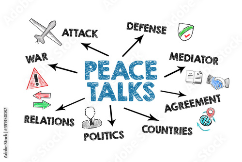 Peace talks. Illustrative information with keywords and icons