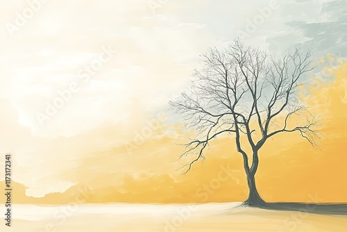 Peaceful Bare Tree Silhouette Against a Pastel Sunrise/Sunset