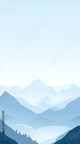 Peaceful Distant Mountain Silhouettes with Clear Morning Sky. Minimal Nature Mobile Phone Wallpaper