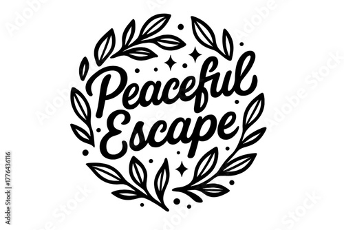 Peaceful Escape Artistry. “Peaceful Escape”. modern hand lettering, smooth curves, balanced composition, clear