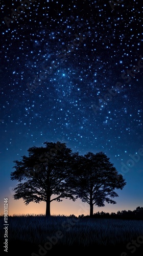 Peaceful Good Night Landscape With Twinkling Stars and Silhouetted Trees. Generative AI