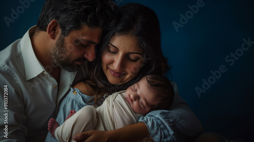 Peaceful Moment of Parents Cradling Their Newborn