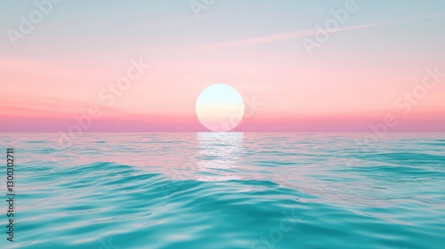Peaceful Pink Sunset Over Calm Ocean Waters Serene Summer Scene Tranquil Beachscape Beautiful Horizon View