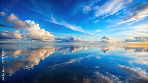 Peaceful reflection of the sky on a calm body of water, water, sky, reflection, serene, tranquil, peaceful, nature, landscape, clouds