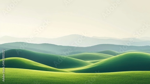 Peaceful rolling hills, tranquil landscape, soft light, distant mountains