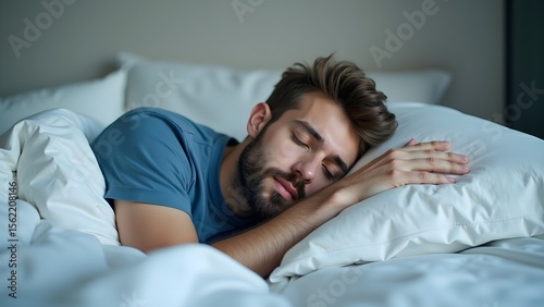 Peaceful Sleep of Bearded Man in Clean White Bedding