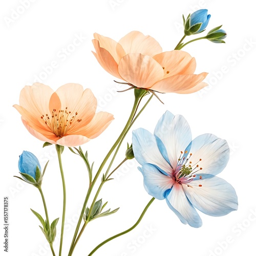 Peach blue flowers isolated on white background