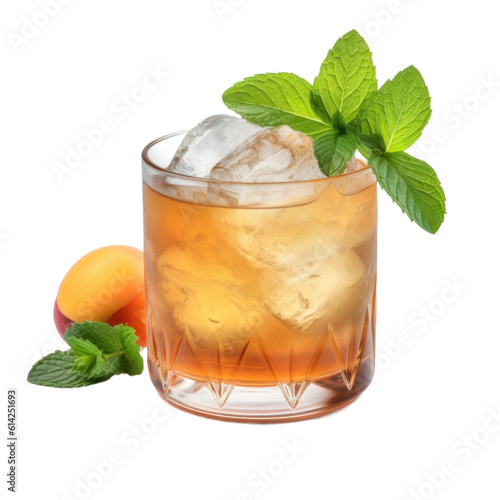 Peach Mint Julep cocktail isolated on transparent background. Generative AI