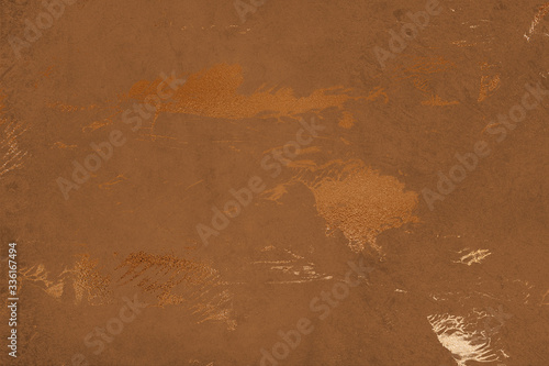 Peachy texture with gold paint leaks and stains. Craft Background.