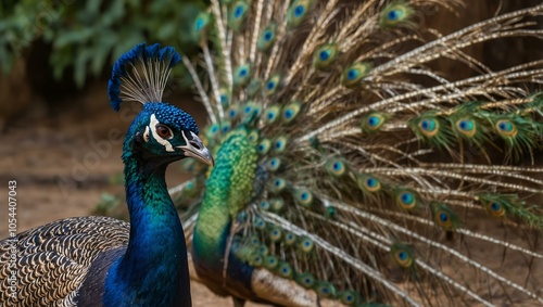 Peacocks roaming freely in the zoo, displaying their vibrant tails.